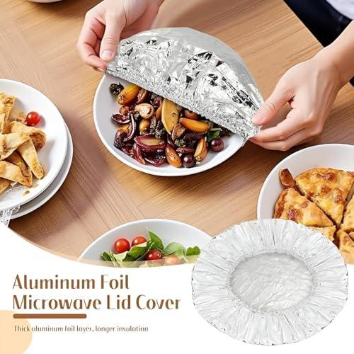 - VERSATILE DESIGN: Disposable aluminium foil lids with ruffled edges, perfect for covering bowls and dishes to keep food fresh and protected