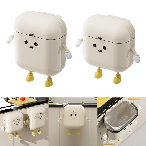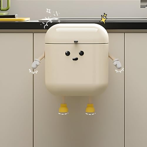 Generic - سلة مهملات ذكية للمطبخ - حاوية قمامة تعلق على الباب مع غطاء علوي رفع، تزيد من المساحة تحت الحوض، خيار تثبيت على الحائط، متوفرة بمقاسات صغيرة وكبيرة، لون ابيض كريمي (مقاس S)