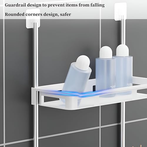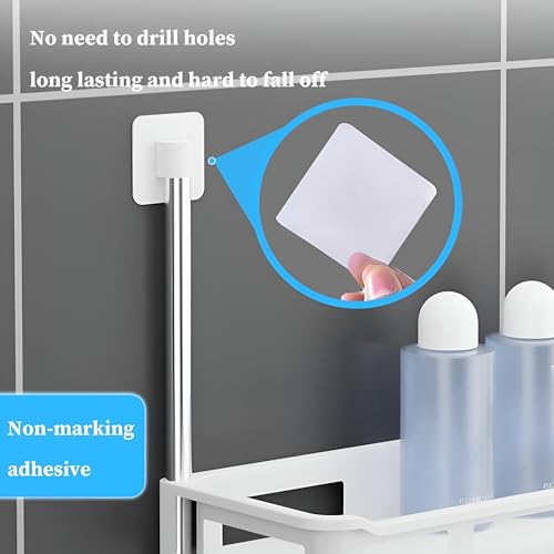 - Easy Installation: The installation process is designed to be as simple as possible. It only requires the application of two clear adhesive stickers to the top of the ceramic toilet. No drilling toilet organizer. The poles at the back of the toilet rack extend below the top of the ceramic toilet, providing added stability.