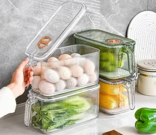 - خامة عالية الجودة وآمنة على الصحة: صُنع هذا المنظم من بلاستيك عالي الجودة وآمن تمامًا للاستخدام مع الأطعمة. خالٍ من مادة BPA الضارة ومقاوم للكسر، مما يجعله خيارًا موثوقًا به لتخزين غذائك اليومي. الغطاء المحكم الإغلاق يمنع تسرب الروائح أو السوائل، مما يحافظ على نظافة الثلاجة.
