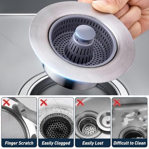 Generic - Smart Sink Strainer with Open and Close Button Handle and Internal Filter for Food and Water Residues - Practical Design and High Quality to Improve Sink Organization and Maintain Hygiene