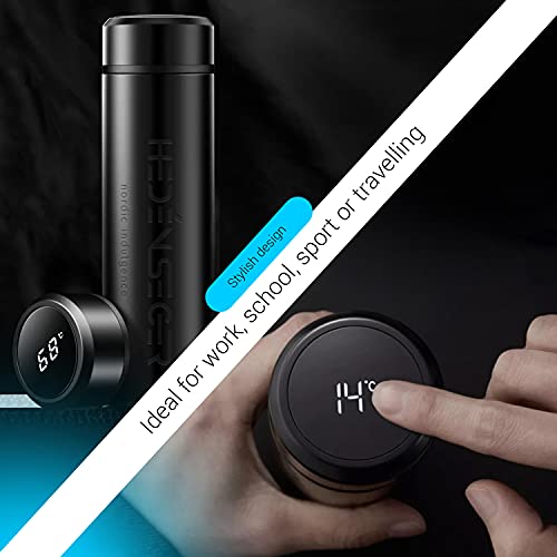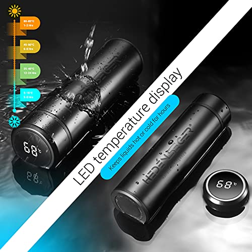 Heden Seger - Smart Stainless Steel Water Bottle, Temperature display, Premium Stainless Steel, Reusable and Leakproof Vacuum Flask, up to 24 hour Insulation for Hot & Cold Drinks, 500ml Water Bottle Black