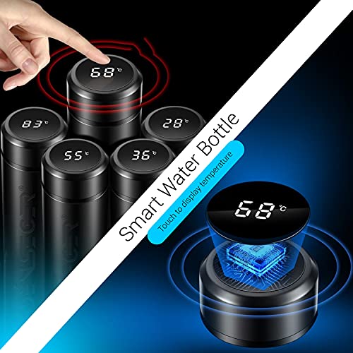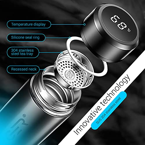 - INTELLIGENT TEMPERATURE DISPLAY-The smart water bottle has a waterproof LED display. A gentle press on the cover displays the internal temperature of the liquid thus preventing any scalding. The internal battery is supplied with the unit and should last several years.