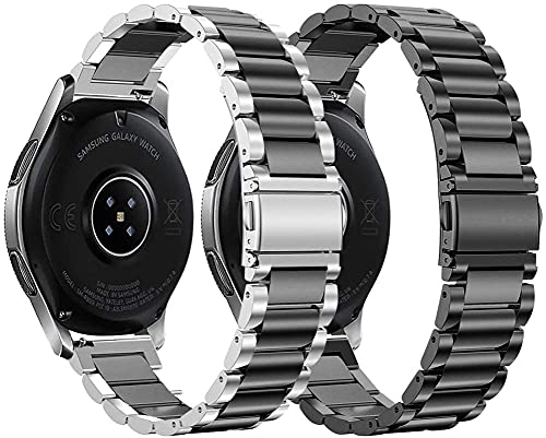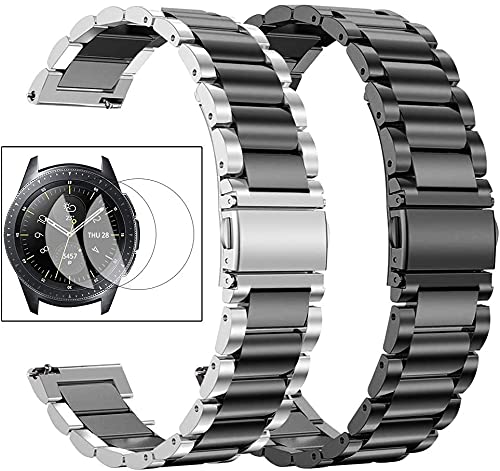 Smart Stuff - Smart Stuff 2x Set of Stainless Steel Metal Band with 2x Screen protector 46mm for Samsung Galaxy Watch 46mm - Black and Double