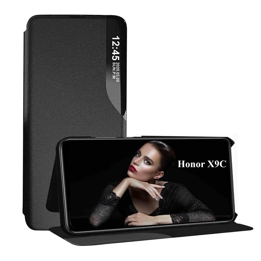 fashion mania - Smart View Flip Cover Slim Case with Horizontal Kickstand, Premium Back Shell folio Case Shockproof TPU Protection for Honor X9C 5G (Black)