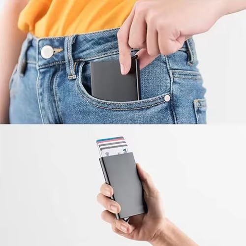 Generic - Smart Wallet and Card Holder with RFID Blocking Technology 6 Cards Stink Out with One Click, Aluminum, Unisex,ID-V2-Black