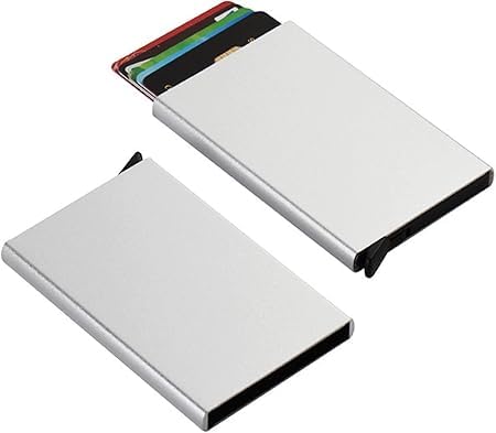 Generic - محفظة إلكترونية ذكية للبطاقات والهويات، مصنوعة من الألمنيوم ، تصميم أنيق وعصري، خفيفة الوزن، مزودة بحماية RFID، مناسبة للجنسين وتوفر أمانًا وتنظيمًا مثاليًا للبطاقات