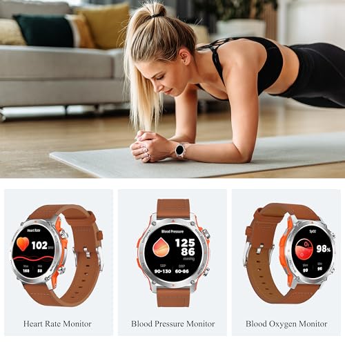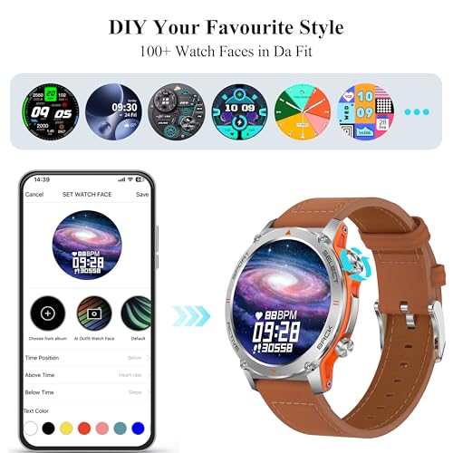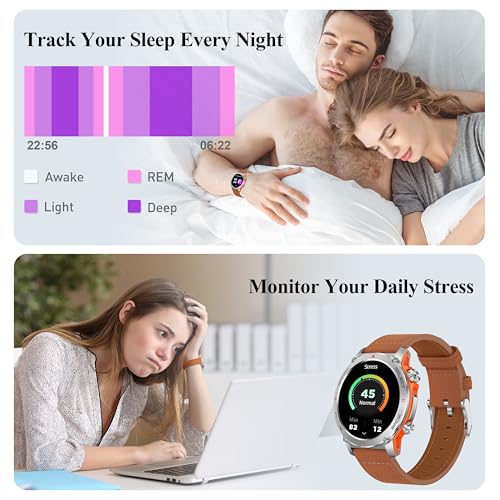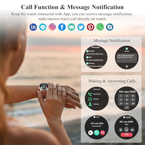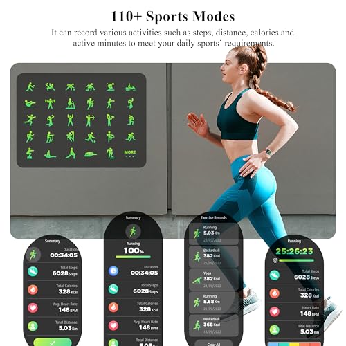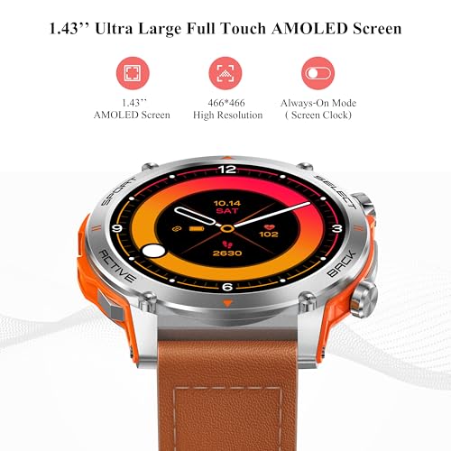Popglory - ساعة ذكية 1.43 انش اموليد للرجال والنساء بإمكانية الرد/ إجراء المكالمات، ساعة لياقة بدنية رقمية، لممارسة أكثر من 110 رياضة ومراقبة ضغط الدم وقياس معدل ضربات القلب ومراقبة الإجهاد لنظامي أندرويد وiOS