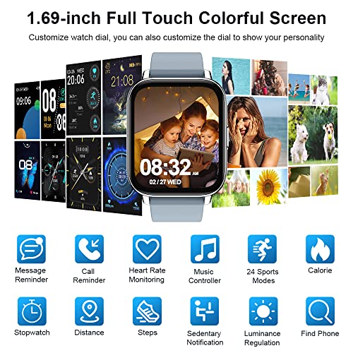- 1.69" Full Touch Screen and Custom Wallpaper: Step counter watch adopt 1.69" Full Touch TFT Screen with 240*280 resolution ratio offers excellent image quality. Bring you better visual effects. 4 level brightness adjustable. It allows you to read time and data clearly even under the glare. You can also customize the dial, beautiful scenery, personal photos, and more through the mobile App, and freely switch the personalized style.