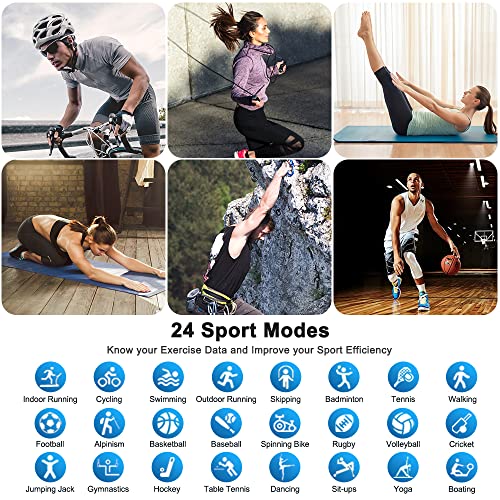 Ordtop - Smart Watch 2021, Fitness Tracker 1.69" Touch Screen Heart Rate Sleep Monitor, IP68 Waterproof Fitness Watch Smartwatch, 24 Modes, Pedometer Activity Trackers Smart Watch for Men Women for Android iOS