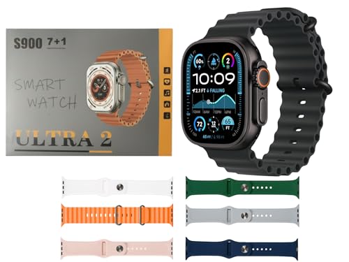 Generic - Smart watch 7 In 1 with Heart Rate Monitor,ِAMOLED Display, Multi-Sport Modes, Compatible with IOS & Android, Support Arabic Not Revers, NFC, 7 different silicone Bands (S900 Black)