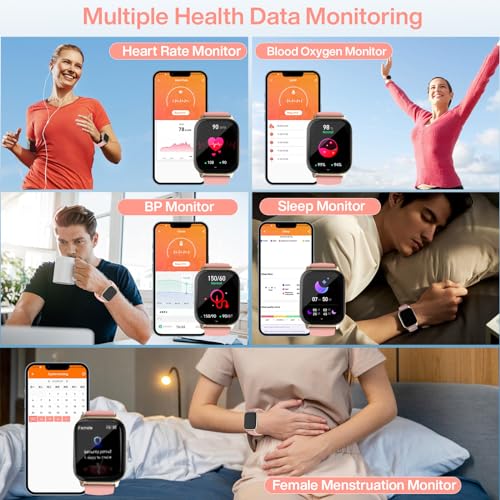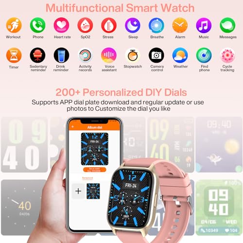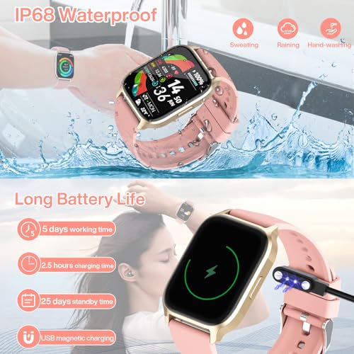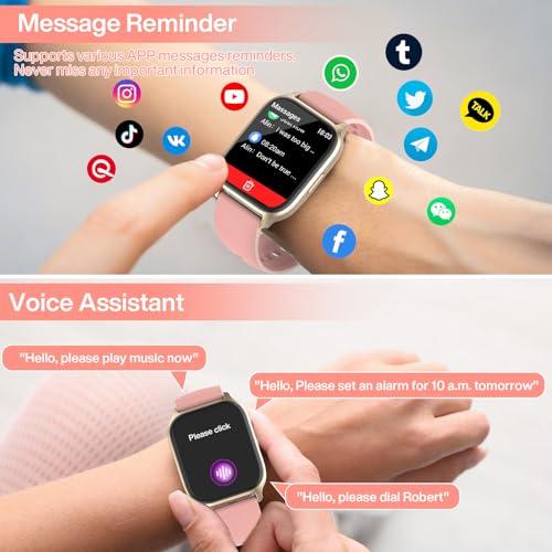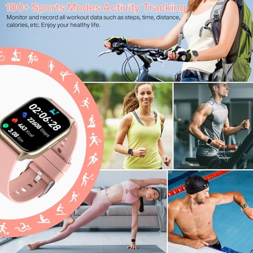 Musclez - ساعة ذكية للنساء والرجال، شاشة لمس HD 1.85 انش لتتبع اللياقة البدنية مع بلوتوث للرد / اجراء المكالمات، مقاومة للماء IP68 مع مراقب معدل ضربات القلب والنوم و100 وضع رياضي لنظام اندرويد وiOS (زهري-1)