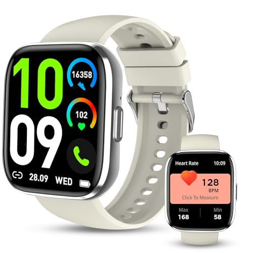 Musclez - Smart Watch for Women Men, 1.85'' HD Touch Screen Fitness Tracker with Bluetooth Answer/Make Call, IP68 Waterproof with Heart Rate Sleep Monitor 100 Sports Modes for Android iOS (White)