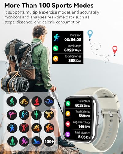 - ⌚【Sports detection function】The smart watch supports more than 100 local sports modes such as walking, running, mountaineering, cycling, basketball, badminton, football, skipping, etc. and pushes sports modes, real-time monitoring and analysis of accurate sports data time. For example, the number of steps, distance, and calories burned.