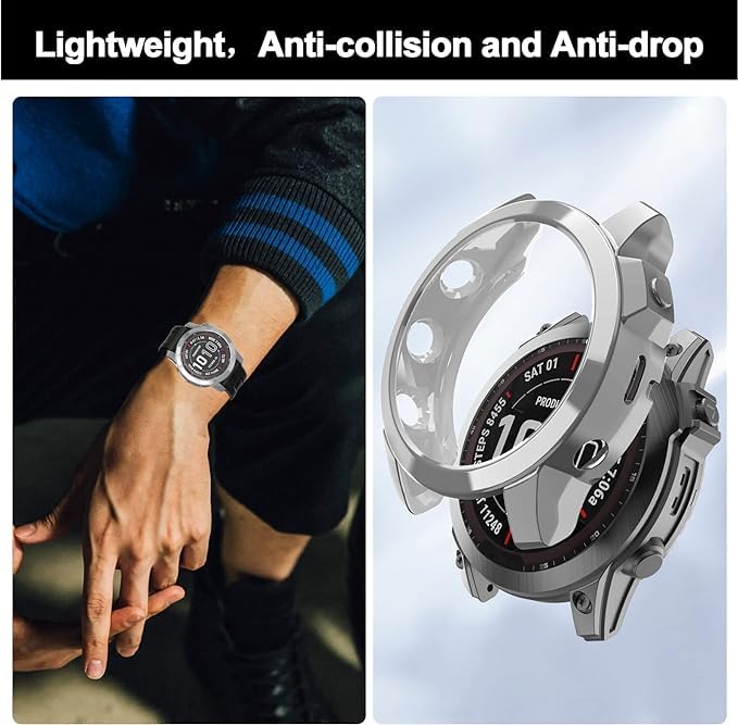 ELMO3EZZ - Smart Watch Protective Case for Garmin fenix 7X Case Cover Plating Protective Case Soft TPU Protector Shock Resistant Soft Case Garmin [fenix 7X (Sliver)