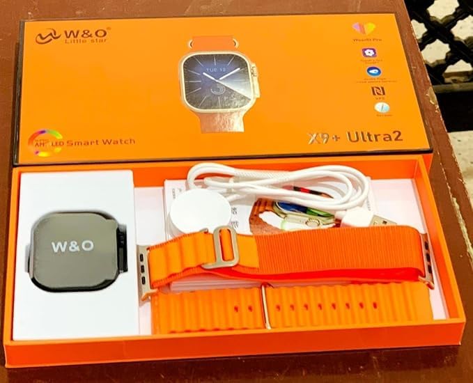 - Original X9 Plus Ultra 2 Smartwatch ( X9 + ultra 2 ) Call Answer - NFC - Bluetooth- Screen Display, Always, Wireless Charging Calculator, Supports NFC, Arabic - Orange
