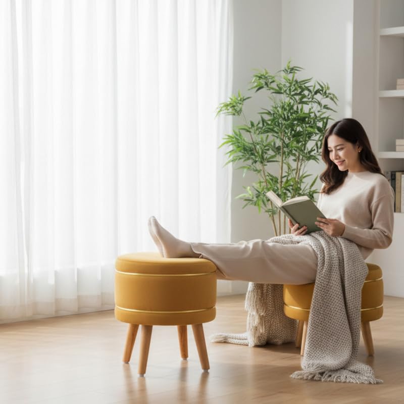 - 🏠 USAGE: {1} These Stools can be used as a sitting pouffe Stool For Living Room, placing them with the Sofa Set Furniture {2} The Ottoman Puffy can be used as an extra sitting in the Bed Room or as a Stool for Dressing table or makeup room Bench Wooden Stool {3} Can be used for sitting in a lounge, cafe, boutique, restaurants or bars Stools. {4} Can be creatively used as a small stool centre table or Bed side table🏡