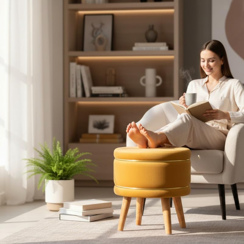 - 🏠【HEAVY LOAD CAPACITY & PRACTICAL】Product Dimension: 16"x16"x18"; Weight Capacity: 150 Kgs. Material:- Holland Velvet, Base Material:- Wooden Polished Legs | 4 Legs Made of Machane Wood, Foam: 2 Inch Premium Quality Foam