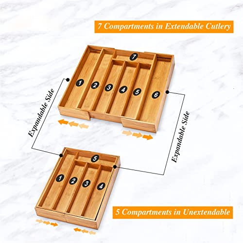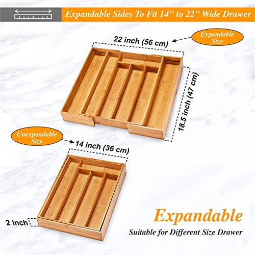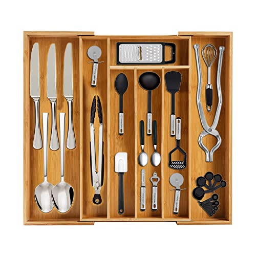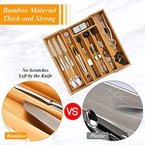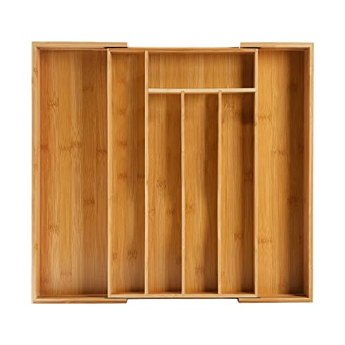 SmartSlide - سمارت سلايد صينية ادوات مائدة من الخيزران لادراج المطبخ - تنظيم وتخزين تناول الطعام قابلة للتوسيع المعياري - ملحقات صندوق الترادفي - المائدة لدرج الصندوق