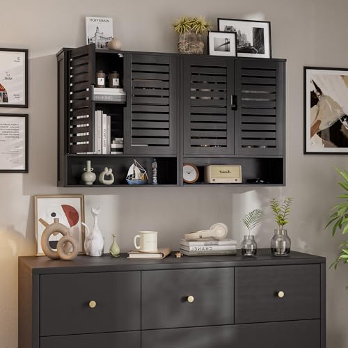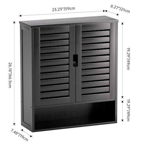 SMIBUY - SMIBUY Bathroom Cabinet Wall Mounted, Bamboo Over-The-Toilet Storage Organizer, Space Saver Medicine Cabinet with 2 Door and Adjustable Shelves (Black)