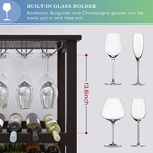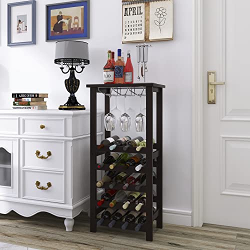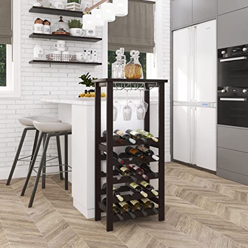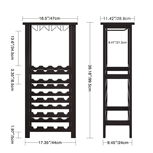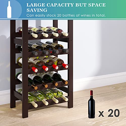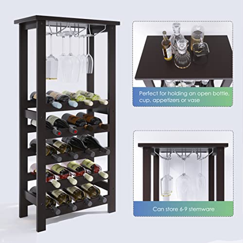 SMIBUY - SMIBUY Wine Rack with Glass Holder & Table Top, 20 Bottles Storage, Floor Free Standing Bamboo Display Shelves for Home, Kitchen, Pantry, Cellar, Bar (Espresso)