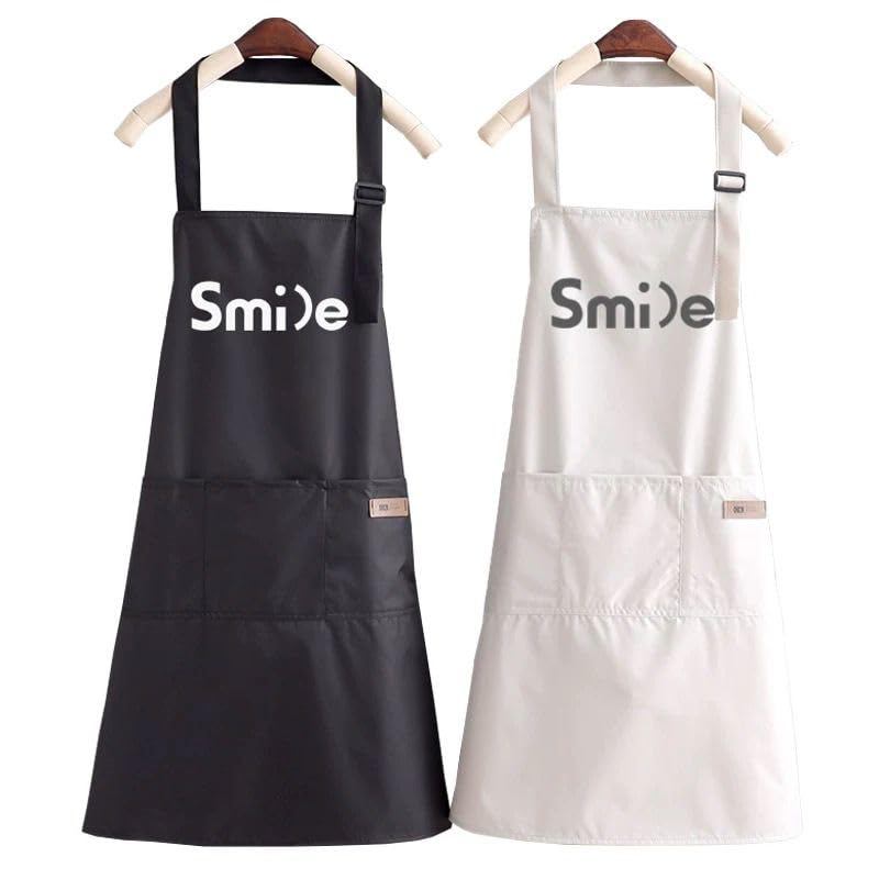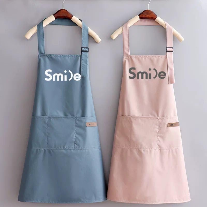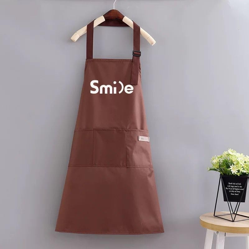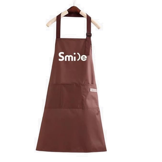 Generic - مريلة مطبخ بحزام رقبة قابل للتعديل، تصميم جيب أمامي، للطبخ والخبز بطبعة نص "Smile"