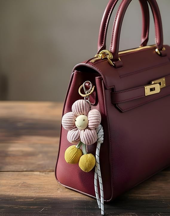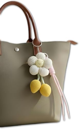 Generic - إكسسوار حقيبة على شكل زهرة مبتسمة مع كرز، حلية مفاتيح بتصميم لطيف، ألوان متعددة مع شرابات، ديكور حقائب نسائي