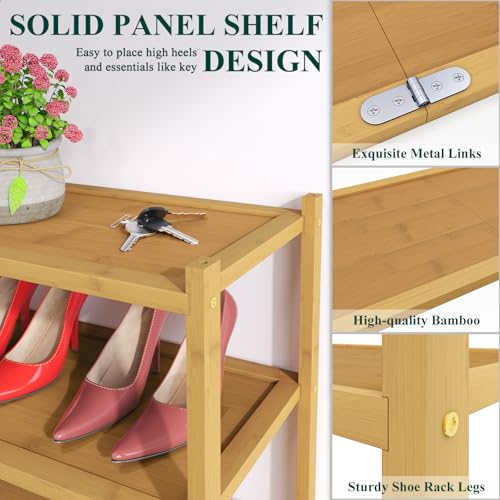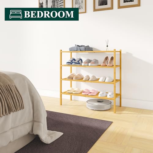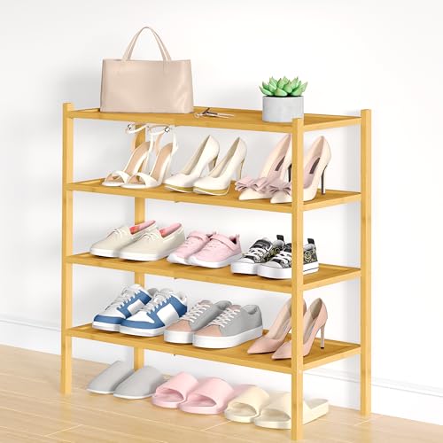 smiry - Smiry Bamboo Shoe Rack, 4 Tier Shoe Organizer for Entryway & Closet, Stackable Free Standing Storage Shelf for Shoes, Bags & Plants, Natural