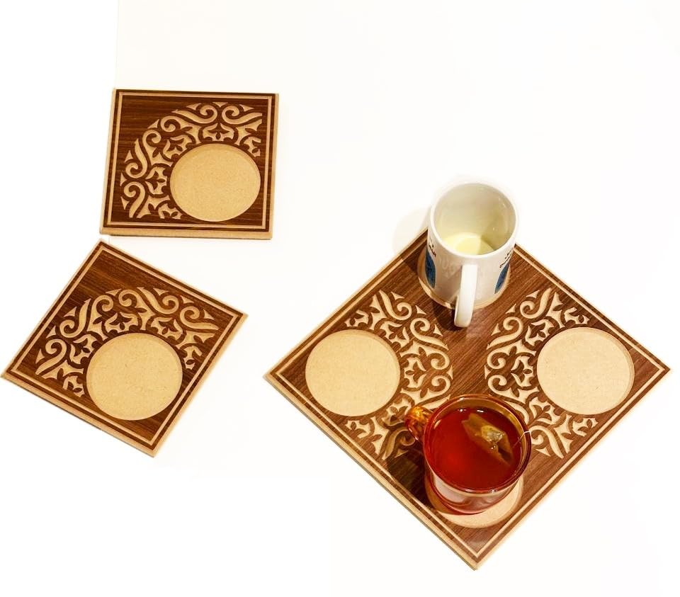 - مجموعة من 3 قواعد أكواب خشبية لـ 6 أكواب مصنوعة من خشب ام دي اف عالي الجودة من سموك