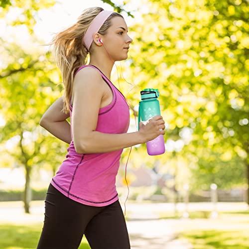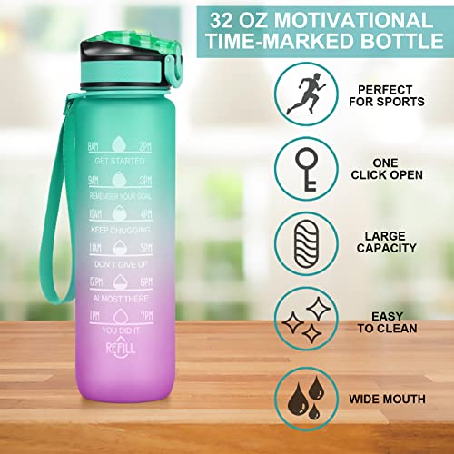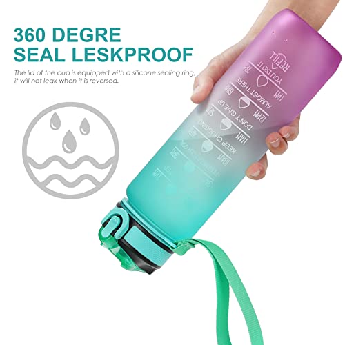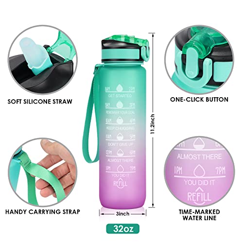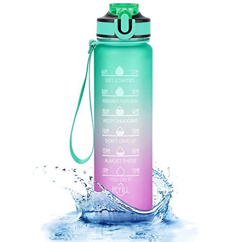 - 【Time Marking and Motivational Quote】The water bottle features a unique time mark and a motivational quote that reminds you to increase your daily water consumption and drink enough water. A 32-ounce large capacity water bottle provides you with plenty of drinking water all day long.