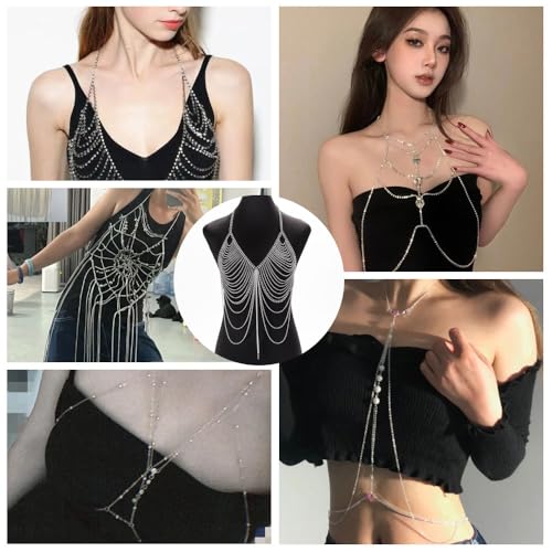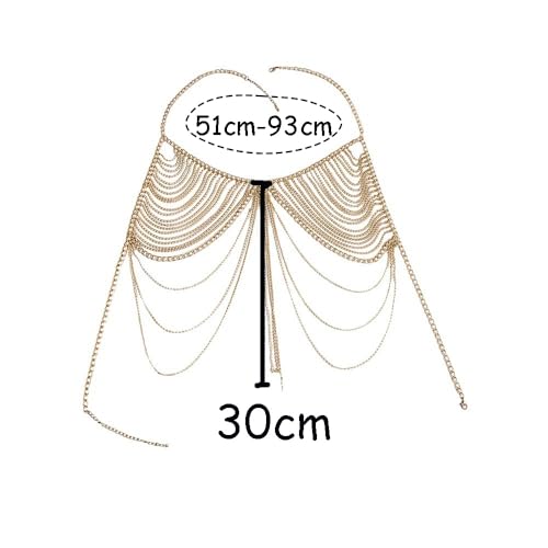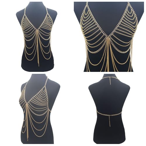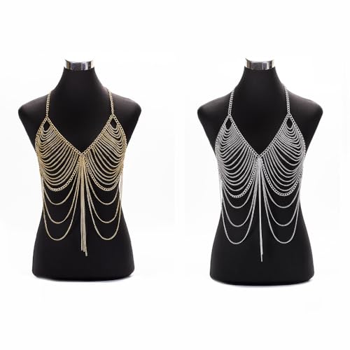 SMTCM - Body Chain Women's Layered Bra Chain Sexy Chest Chain Layered Tassel Lingerie Metal Chain Chains Chest Bikini Body Chain Belly Necklace Body Jewellery for Women Night Club Party (Gold/Silver)
