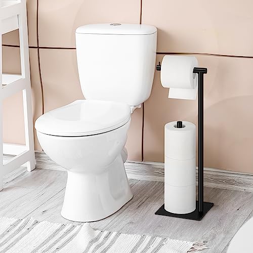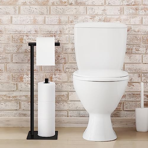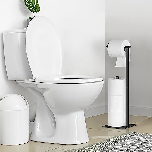 smusei - smusei Toilet Paper Holder Freestanding Bathroom Black Metal Toilet Roll Holder Standing No Drilling Storage Shelves for 4 Paper Rolls Bathroom Accessories