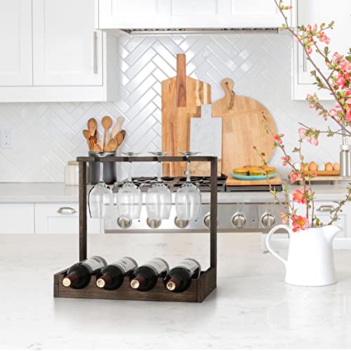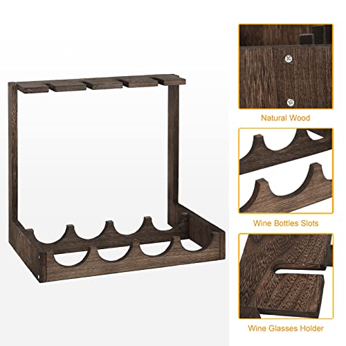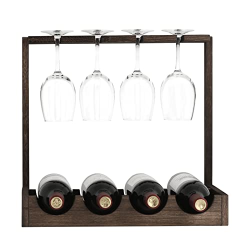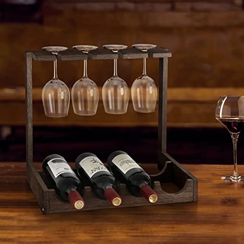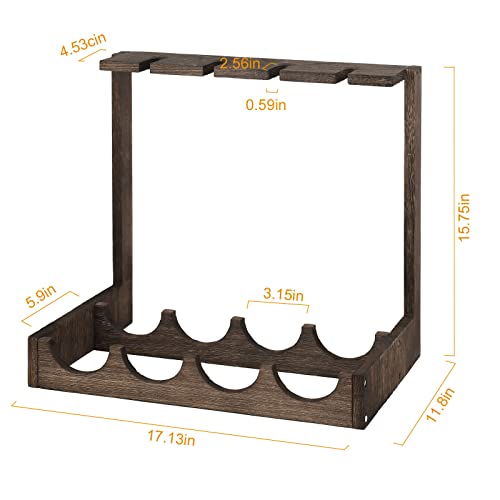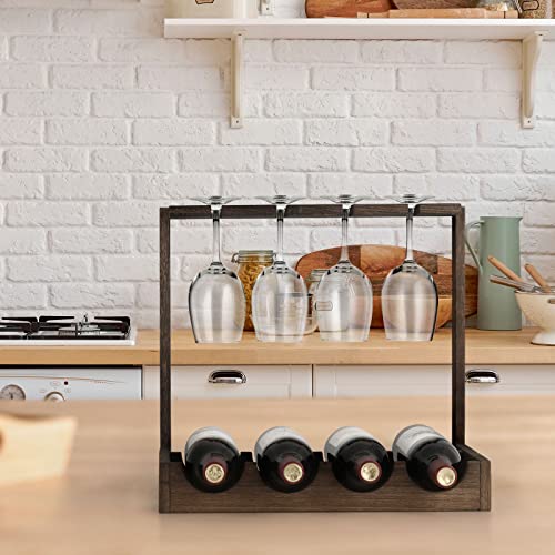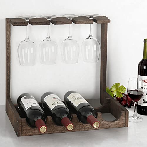 smusei - smusei Wooden Wine Rack Countertop Wine Storage Rack with Glass Holder Rustic Farmhouse Wine Holder Small Cabinet Wine Origanizer Shelf for Kitchen Bar Wine Cellar Dining Room (Brown)