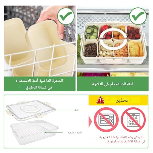 - Features a transparent, partitioned design with 8 separate storage compartments, allowing for organized and visible storage of various food types like nuts, fruits, and biscuits, making contents easily accessible and neatly arranged.