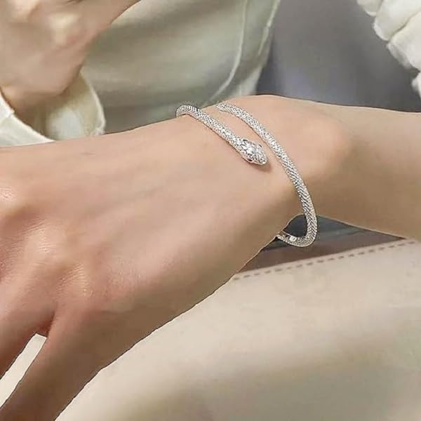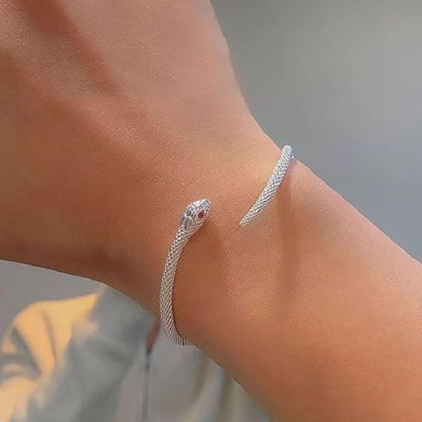 fashion mania - Snake Bracelet Silver Cuff Bangle Bracelet Vintage Serpent Snake Open Cuff Bracelet Adjustable Animal Chain Bracelet Jewelry for Women Boho Hand