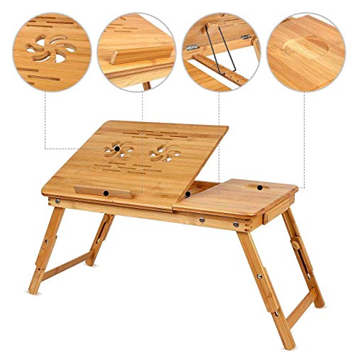- MULTIFUNCTIONAL BAMBOO LAPTOP DESK: 100% natural bamboo, environment friendly and sturdy; used for surfing the Internet, eating food, coloring, reading, doing homework on the bed, sofa, recliner, floor, car, etc.