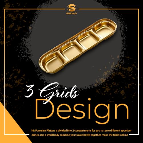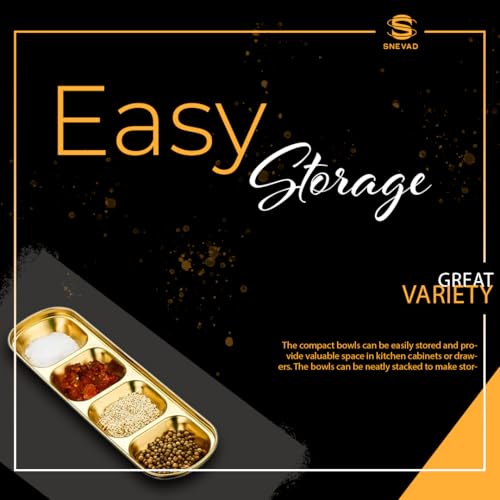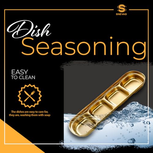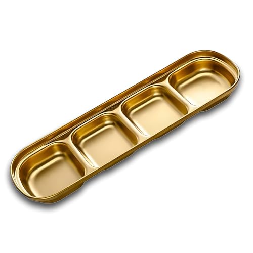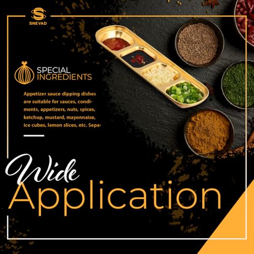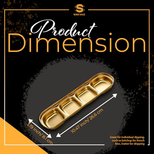 Snevad - Gold Dipping Sauce Dish Stainless Steel Golden Set Divided Sauce Dishes Platter (4 Compartment) Stainless Steel Divided Food Kitchen Condiment Snacks Serving Tray Dinner Plate Tray for Adults