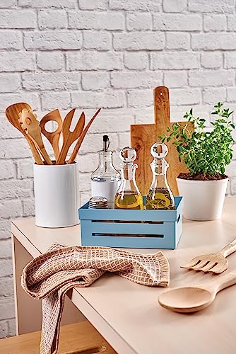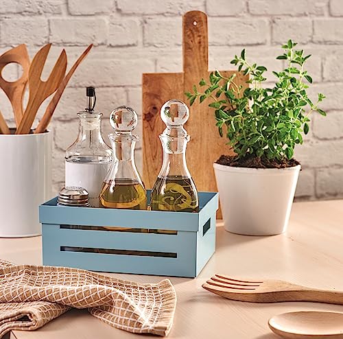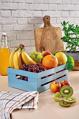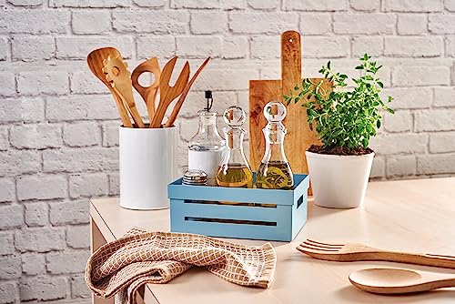 - Light blue plastic box, made on the design of a white wooden box. The design makes it a beautiful kitchen accessory to keep on display on top or shelves. The kitchen container helps you organize spaces: bring fruit and vegetables, jars and seasonings. You use it when cooking, to always have the things you need most often at hand. Use it on the table, for example to serve and have on hand seasonings, salt, pepper, spices.