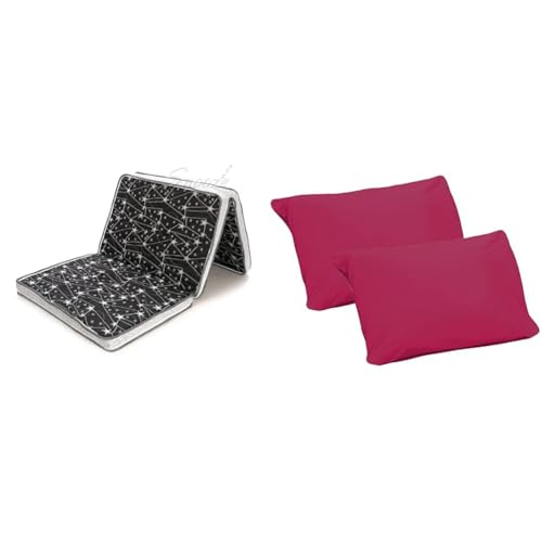 Snooze - مرتبة بيد تو جو (قابلة للطي) من سنوز، مقاس 1.95 م × 1 م، تصميم نجوم + سنوز، طقم أكياس مخدة من 2 قطعة، 45 × 65 سم، لون بينك مكسيكي