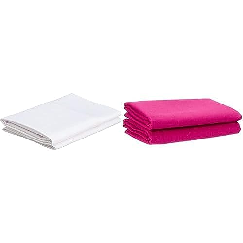 Snooze - مجموعة من اكياس مخدات، مقاس 50 × 70 سم، بلون ابيض سادة من قطعتين + طقم اكياس مخدات قطن من هوم اوف لينين، بلون ارجواني، مقاس 50 × 70 سم