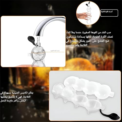 Generic - قالب كبير لصنع كرات ثلج، قالب يصنع 4 كرات ثلج بقطر كروي 5.6 سم، قالب مناسب لتبريد الويسكي والبوربون ومختلف المشروبات الكحولية، كما أنه مزود بسدادة مصنوعة من مادة السيليكون (قطعتان)