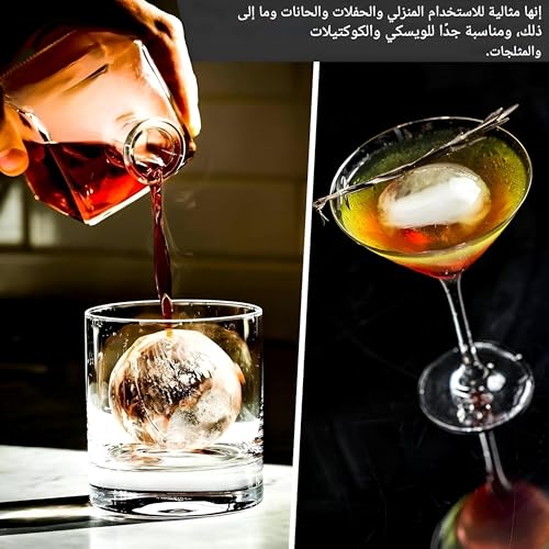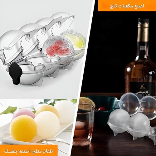- قالب لصنع كرات الثلج بقطر كروي يبلغ 5.6 سم: هذا المنتج يصنع 4 قطع مثالية من كرات الثلج بقطر كروي 5.6 سم ليتسنى لك الاستمتاع بشرب الويسكي، قالب صنع الثلج هذا يصنع كرات ثلج بأشكال فواكه جميلة تصنعها بنفسك وهو بمثابة شريك مثالي للكوكتيلات والعصائر والشاي والقهوة المثلجة.