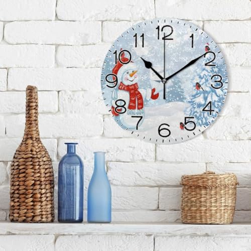 Generic - Snowman in Santa Cap with Letter Wall Clock Battery Operated Non Ticking Silent Quartz Analog Rustic Farmhouse Christmas Round Clock Retro Decor for Home Kitchen Living Ro