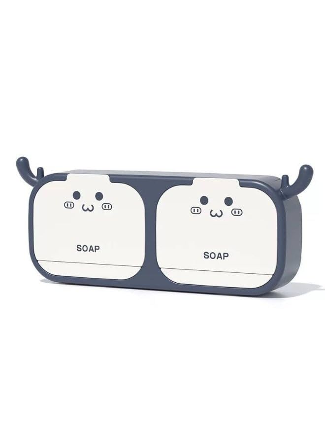 generic - Soap dish with 2 compartments, drawer, and drainer + 2 double-sided adhesive hooks