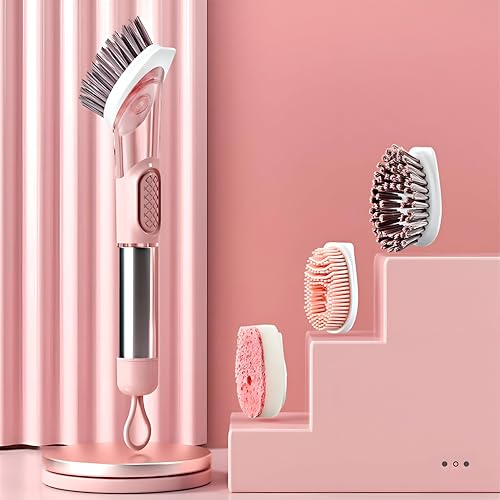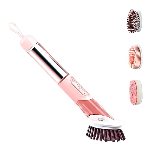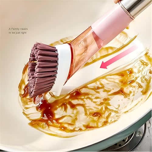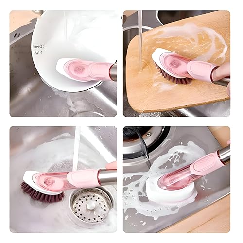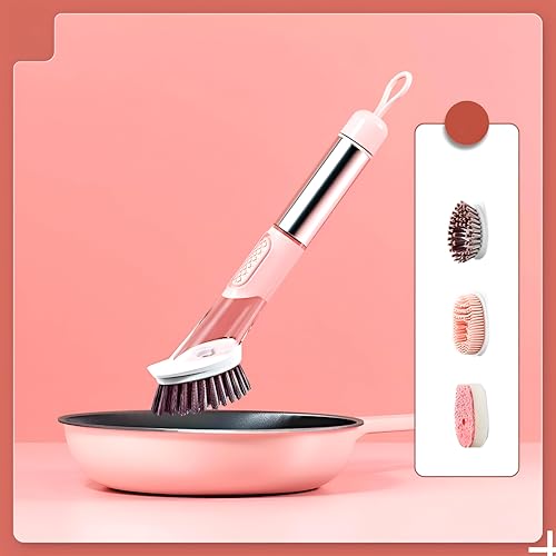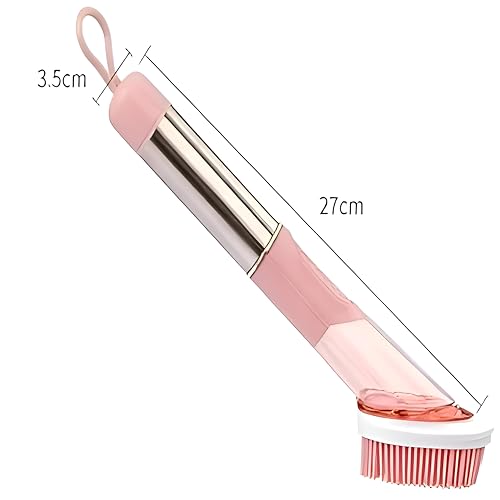 Generic - فرشاة موزع صابون - فرشاة اطباق مريحة بلون بينك مقاس 27 سم مع حاوية صابون مدمجة لتنظيف الاطباق وادوات الطهي بدون مجهود (بينك)