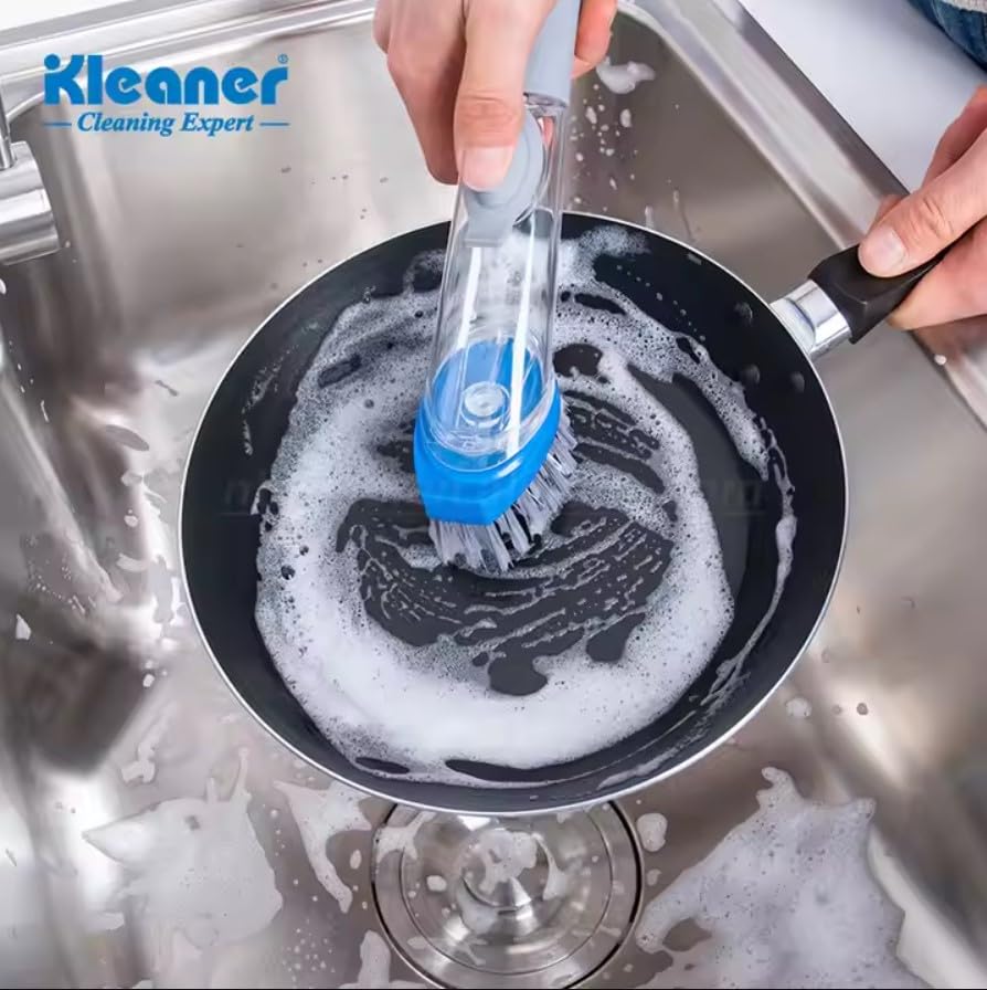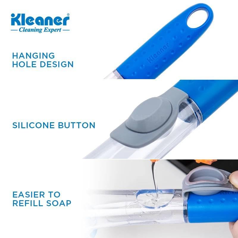 - Soap And Scrub In One Step – No more stopping mid-wash to grab the soap bottle! This 2-in-1 dish brush dispenses soap with a simple press, saving time and mess at the sink.