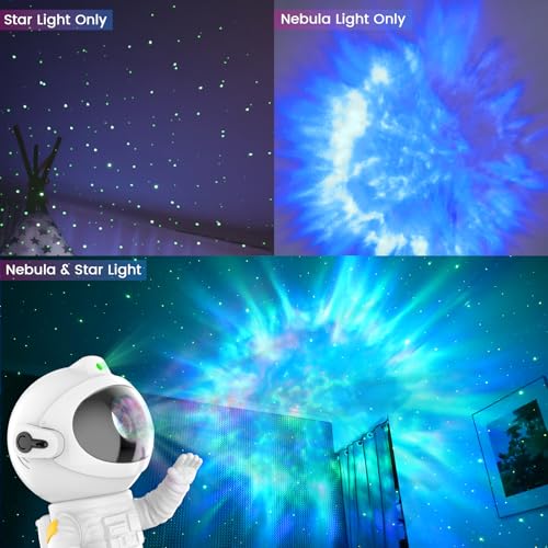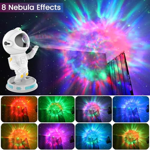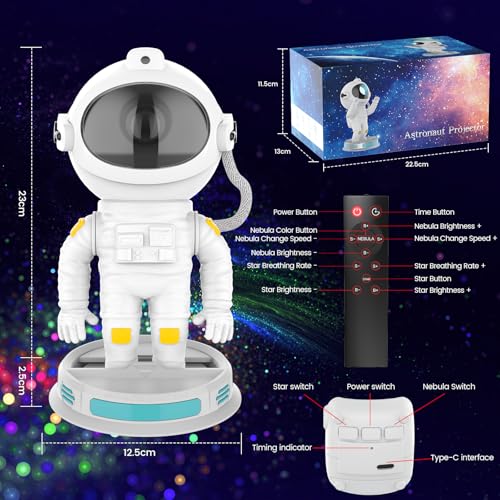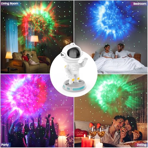 - 【2-in-1 Galaxy Projector】This astronaut light can be used as both a projector and a night light. The astronaut galaxy projector provides 8 bright colours, stars and nebula, and brings you with a unique galaxy viewing experience. You can project the starry sky into your bedroom or children's room to watch with your family.