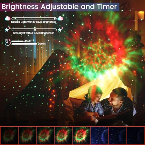 - 【Multiple Uses Star Projector Night Light】The galaxy projector is not only a practical decoration and night light, but also an ideal gift. The star projector can be used as an activity prop to add fun to children's birthday and camping theme parties. The night light is also a good gift for adults and kids on special days like Christmas, Valentine's Day, Children's Day, and birthday.