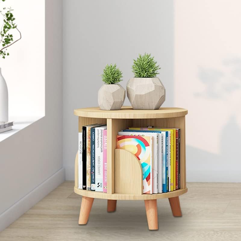 - ROTATABLE DESIGN - This bookshelf is rotatable and also features an open design, making it easy for you to choose, access, and place your books conveniently and practically. It has a small footprint and makes good use of vertical space. It maximizes storage capacity while occupying minimal floor space.