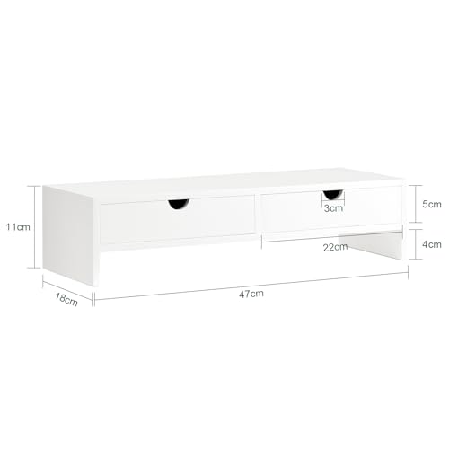 SoBuy - SoBuy BBF02-W Monitor Stand, White MDF, 2 Drawers, 15kg Load Capacity